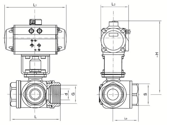 2、氣動裝置與閥門的連接尺寸應(yīng)符合ISO5211(底部)、 GB/T12222 和 GB/T12223 的規(guī)定。